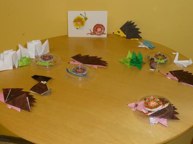 Október 11-én Ancsa Molnárné Ruskó Ida kétféle sünit és egy teatasakból készíthető csigát tanított az érdeklődőknek.