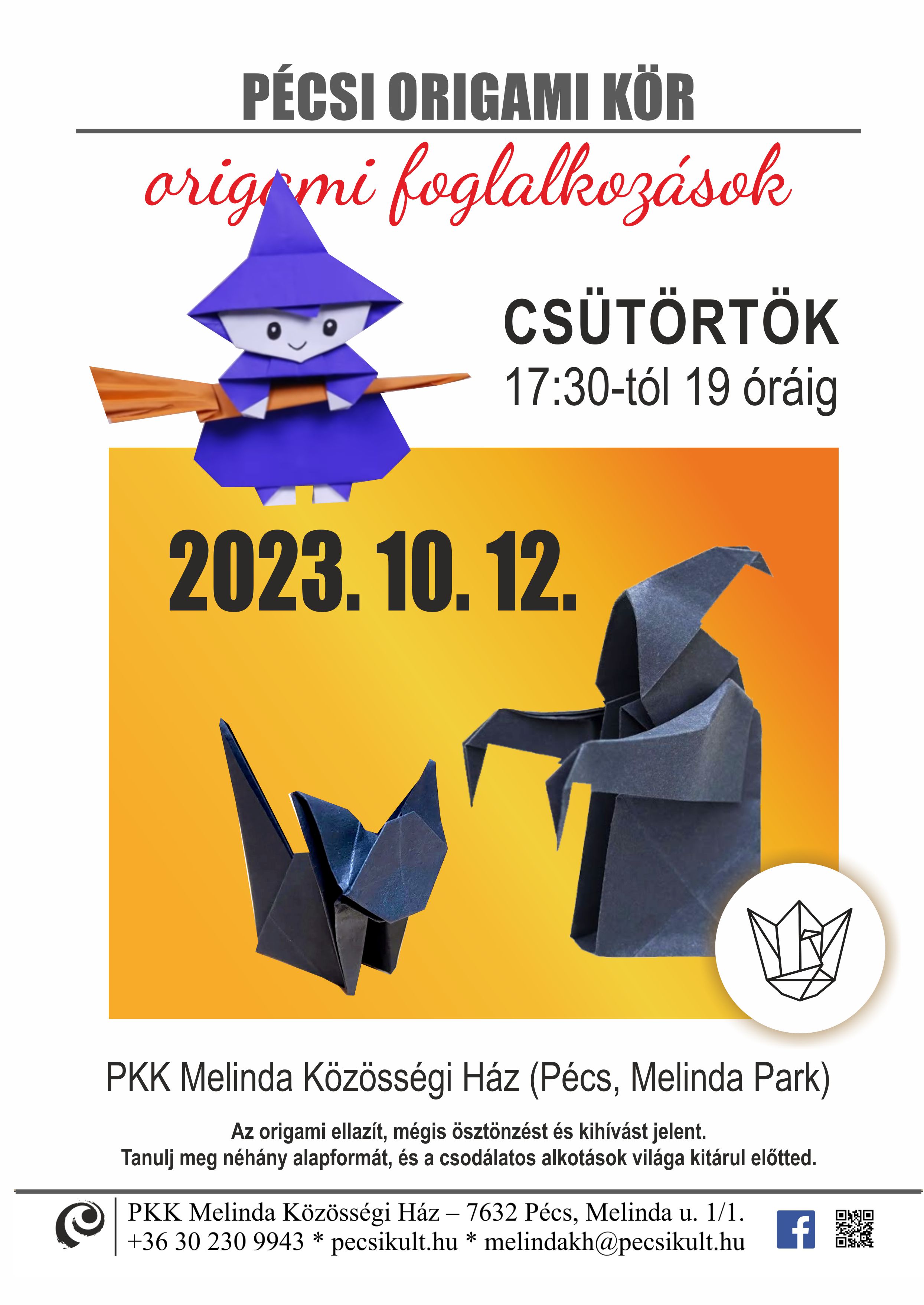 Origami foglalkozás - Pécs 2023.10.12. - Boszorkányok, szellem és cica hajtogatás |