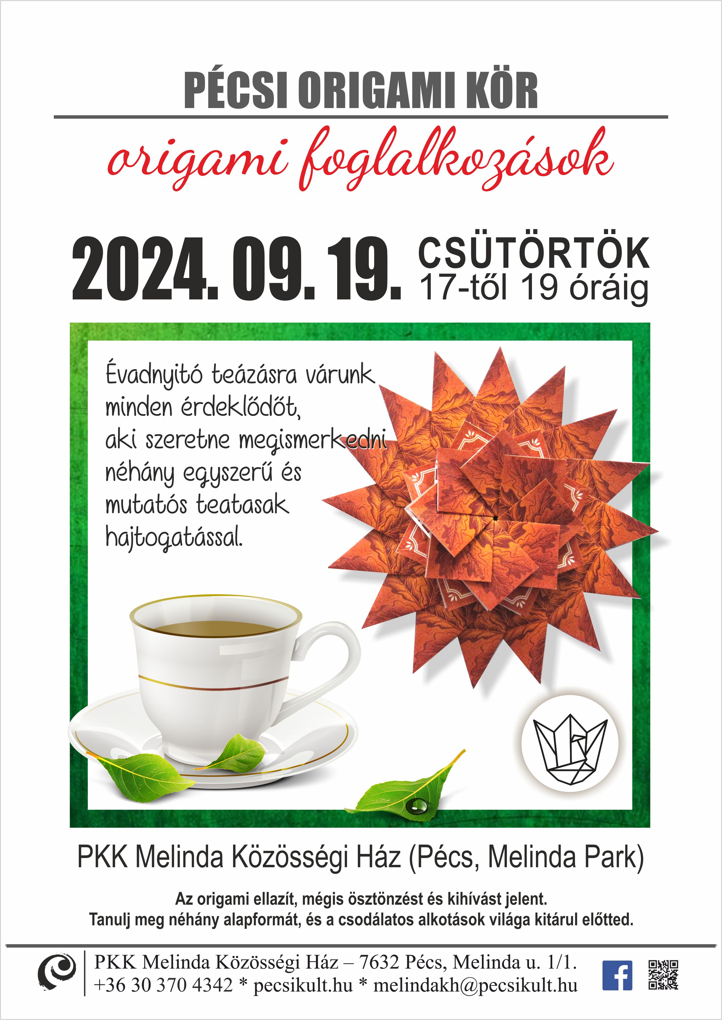 Origami foglalkozás - Pécs 2024.09.19. - Teatasak hajtogatások |