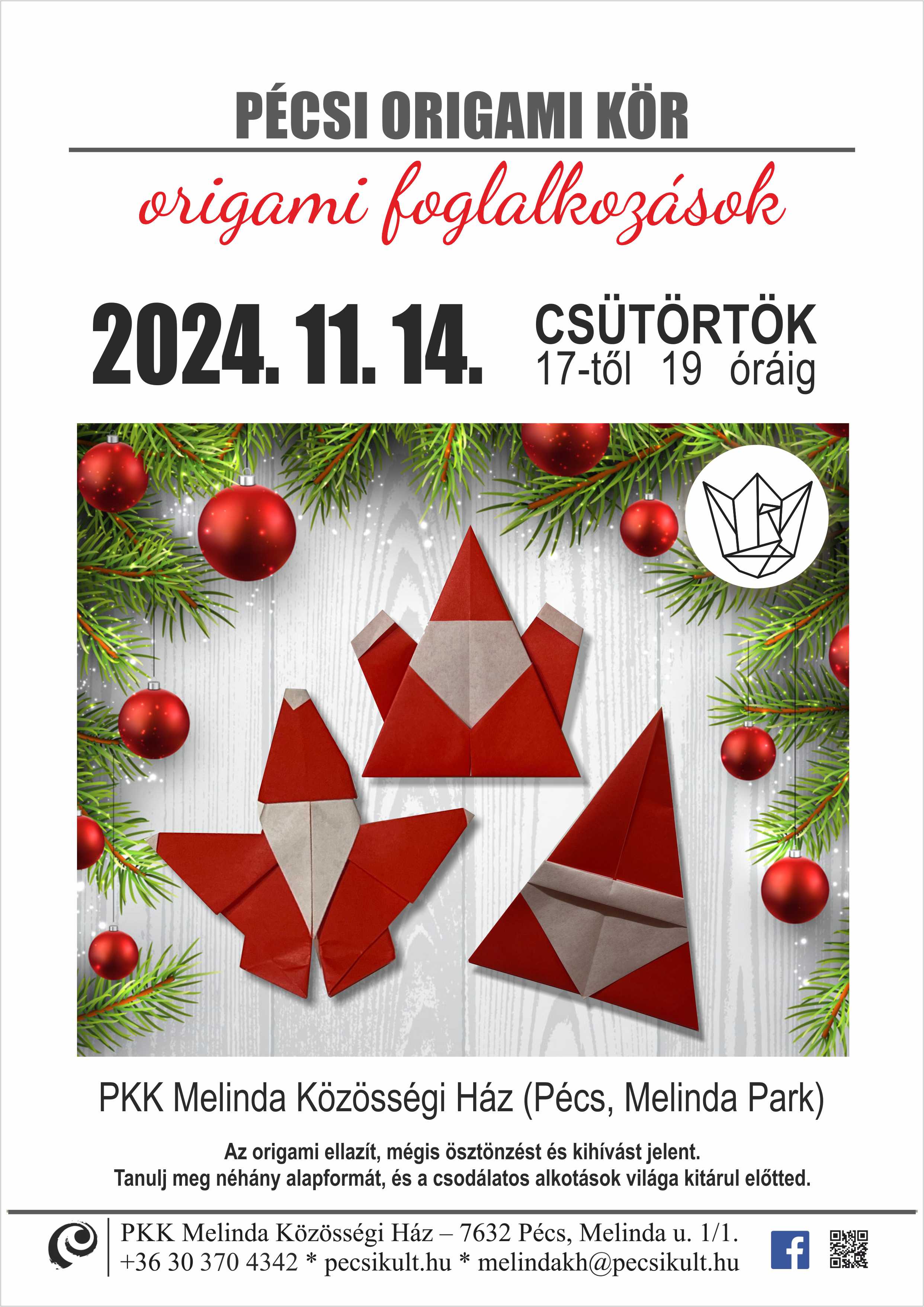 Origami foglalkozás - Pécs 2024.11.14. - Mikulások |