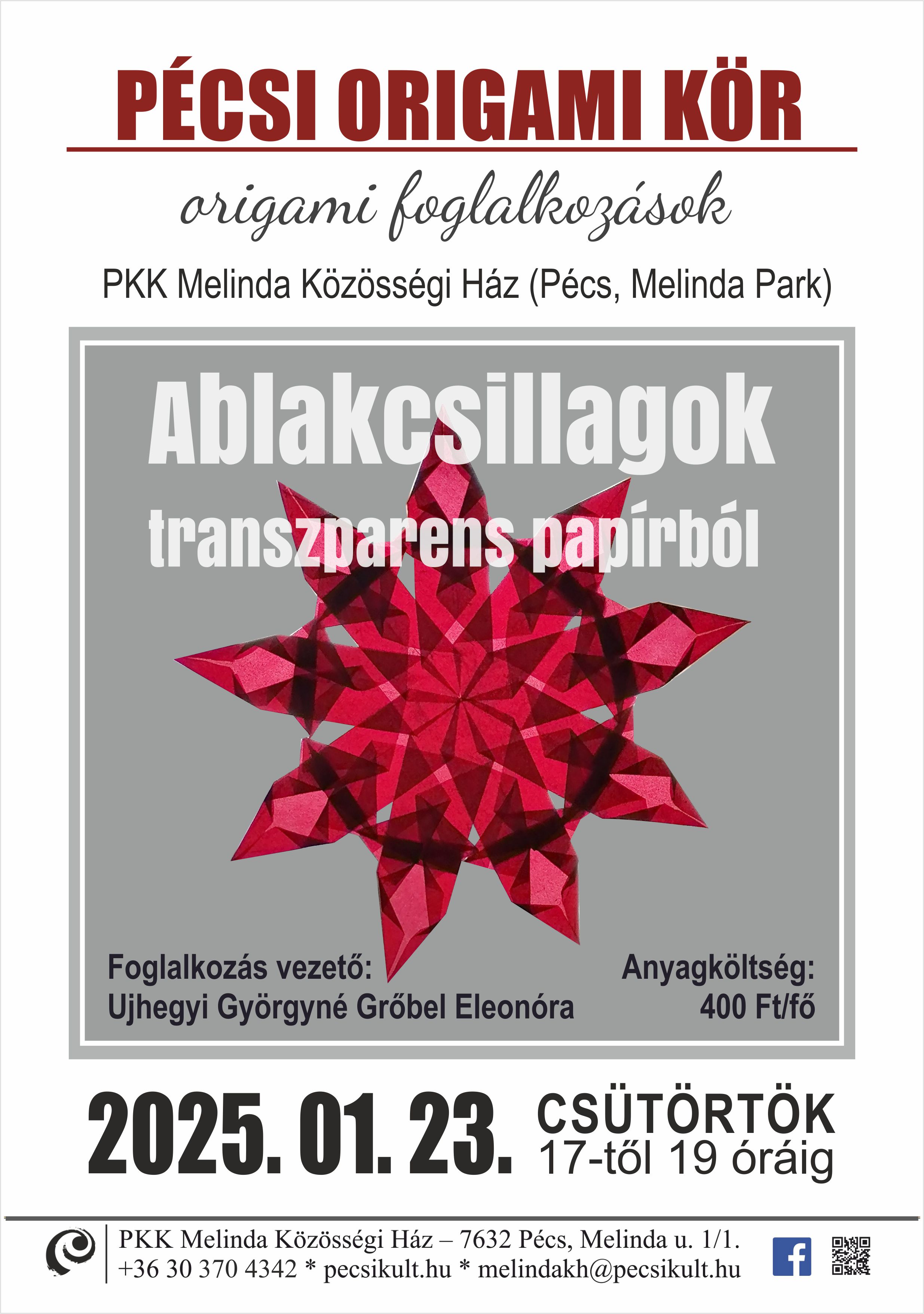 Origami foglalkozás - Pécs 2025.01.23. - Ablakcsillagok transzparens papírból |